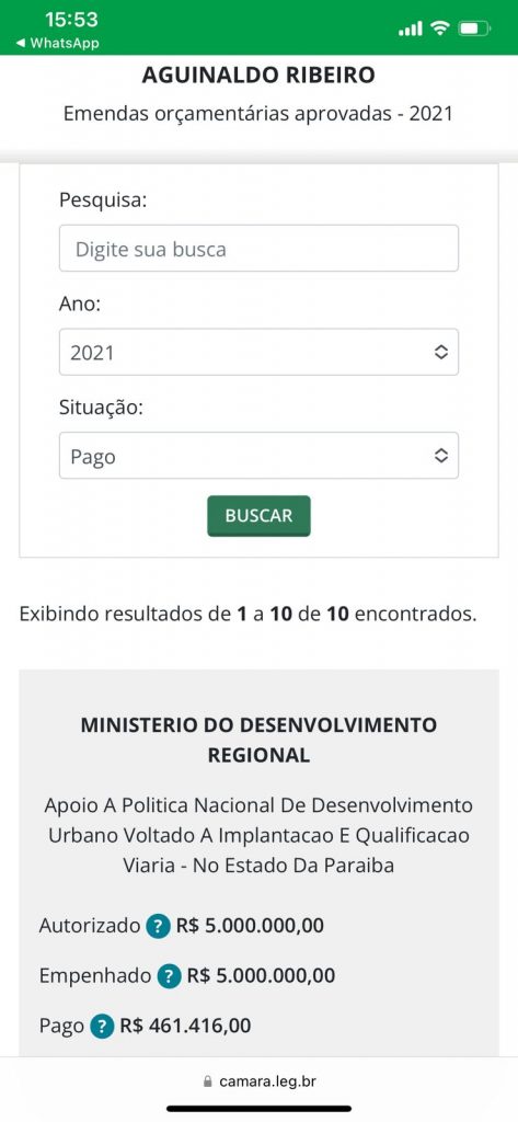 Para se ter uma ideia da dificuldade em liberar suas emendas, no Ministério do Desenvolvimento Regional, o deputado apresentou R$ 5.000, 000 (Cinco Milhões) em emendas e só pagos R$ 461.416. De um milhão empenhado no Ministério da Cidadania em 2021, apenas R$ 14 mil foram liberados para as prefeituras. Aguinaldo também apresentou R$ 2.000, 000 (Dois milhões) no Ministério da Agricultura, Pecuária e Abastecimento, mas só conseguiu liberar R$ 238.750.